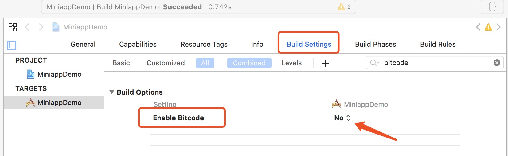 關閉工程的bigcode選項:Enable Bitcode: NO